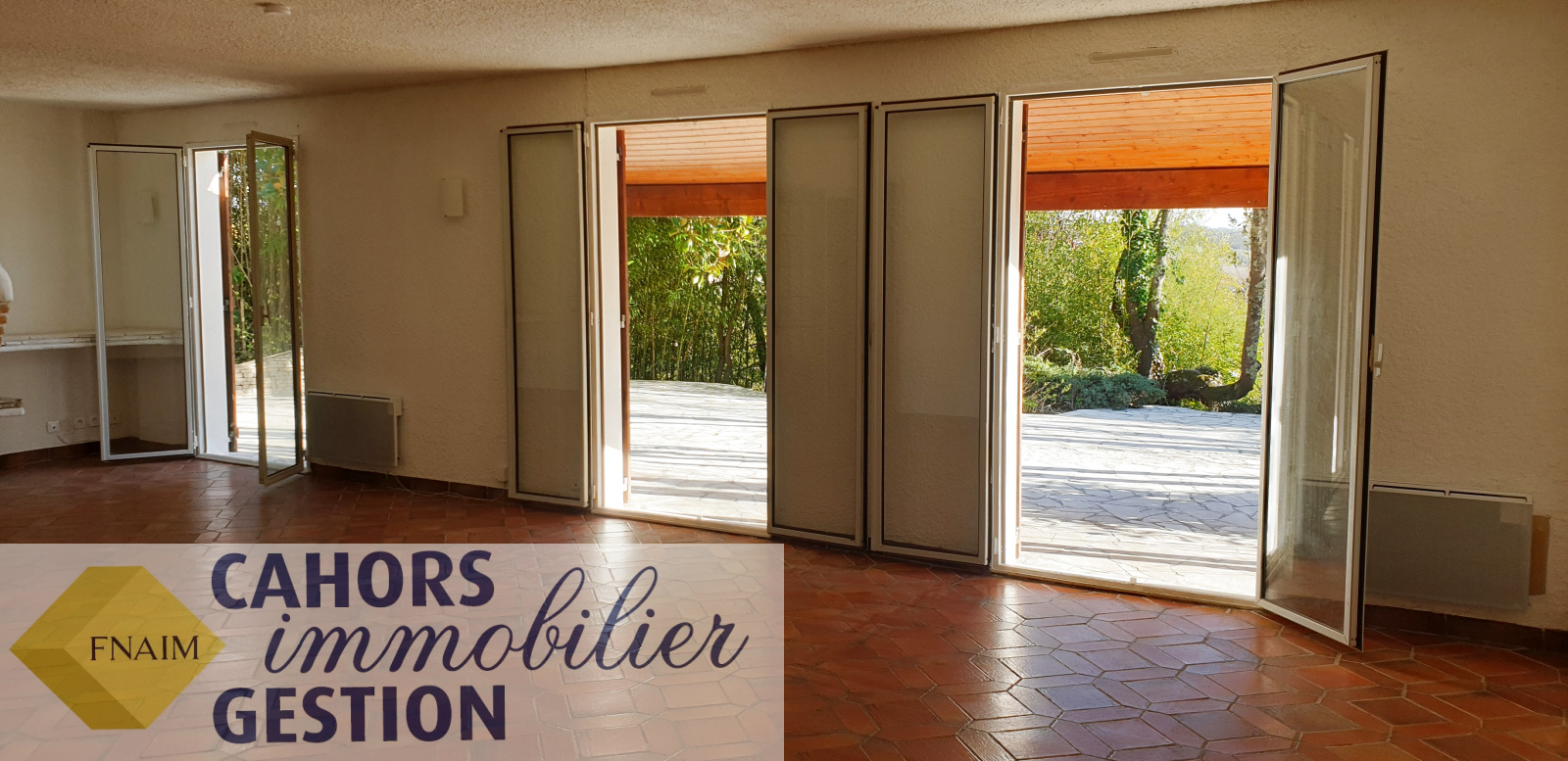 Elle est composée d'une grande entrée avec placard, d'une cuisine séparée équipée avec accès direct au garage, d'un vaste séjour lumineux avec cheminée et donnant sur la terrasse, de 3 chambres, d'une salle de bain et wc indépendant, d'un jardin non clos.